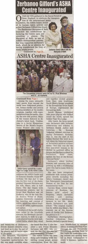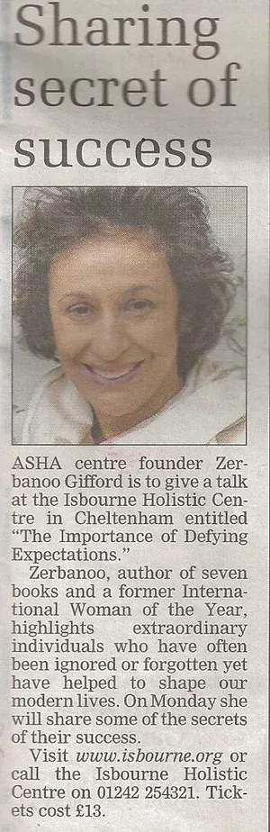Zerbanoo’s greatest achievement has been the founding of The ASHA Centre in the Royal Forest of Dean in Britain. It is a magical place where people receive inspiration and are able to connect more deeply with nature, each other and their higher selves. The Centre has an outstanding track record in delivering transformative education in the fields of ethical leadership, interfaith understanding, sustainable development and the performing arts. Visit The ASHA Centre website www.ashacentre.org