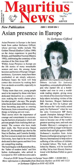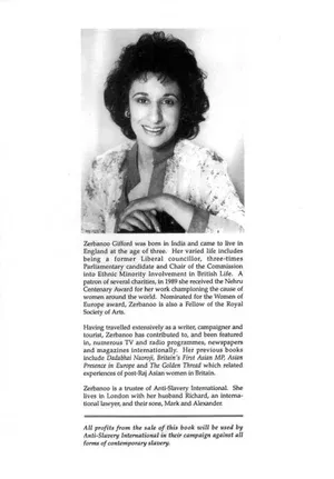 Zerbanoo has authored seven books, in which she has researched and written about the noble lives of outstanding individuals often forgotten or written out of our shared history. These include her two heroes Dadabhai Naoroji, the first Asian to become a member of the British Parliament in 1892, and Thomas Clarkson, who spearheaded the campaign to end the transatlantic slave trade in the British Empire in 1807 and the full emancipation of British slaves in 1834. Her latest book – ‘Confessions to a Serial Womaniser: Secrets of the World’s Inspirational Women’ - examines the lives of over 300 inspirational women from 60 countries for which she received a NESTA Fellowship (Britain's National Endowment of Science, Technology and Art).