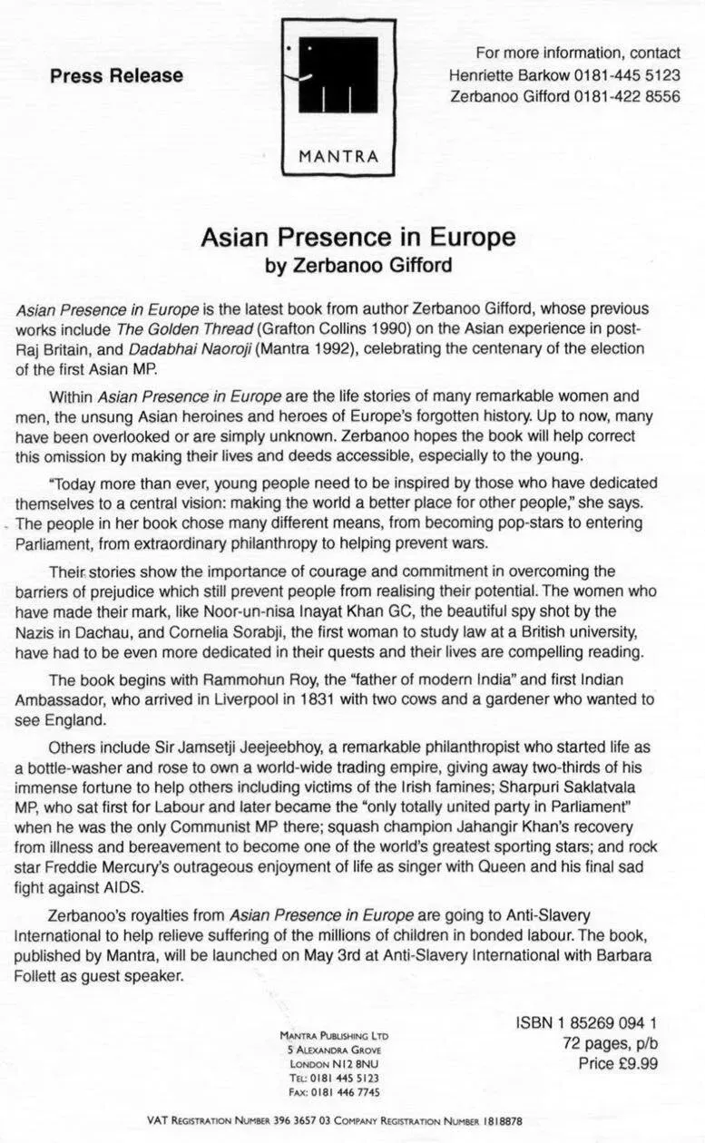 For more information on Zerbanoo Gifford, please contact The ASHA Centre on +44 7468 165098 or email [email protected]