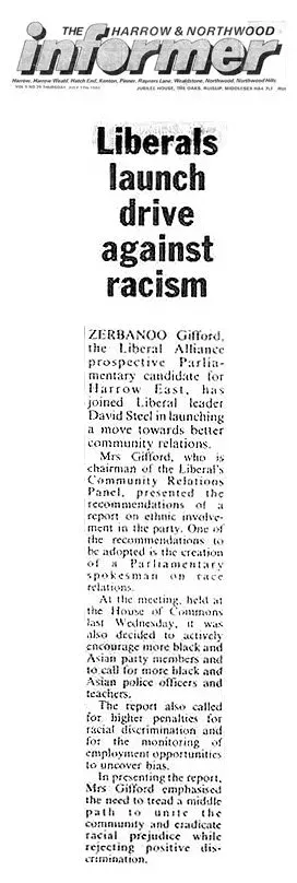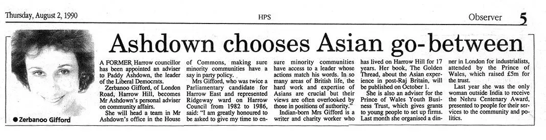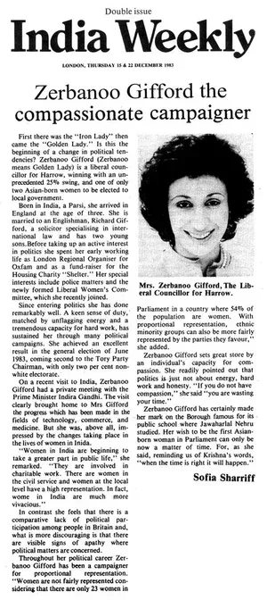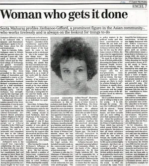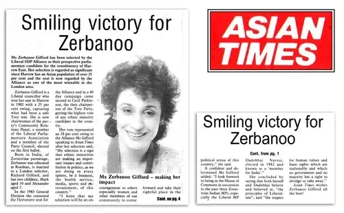 Zerbanoo has dedicated her life to champion causes for social justice worldwide. Her public life started in 1982 with her historical election in Harrow, London, where she achieved a 27% swing to become the first BAME councillor. She went on to stand for parliament and has chaired commissions, advised political leaders and worked with foreign dignitaries.